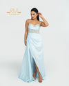 Der Rock fließt aus edelstem Satin in einem sanft fallenden Verlauf bis zum Boden. Die Drapierung an der Hüfte und der elegante Beinschlitz erzeugen Bewegung, ohne den Stil zu brechen – alles an diesem Kleid wirkt fließend, nie aufgesetzt. Die Rückansicht überzeugt durch die klar strukturierte Taille, den ruhigen Schwung des Satins und die feminine Linienführung, die auf natürlicher Eleganz basiert.
